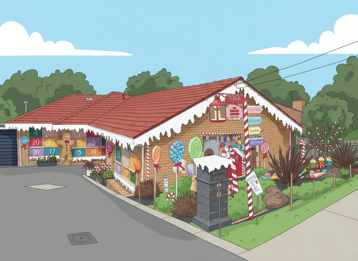 Inspired by the love of baking, our life-sized Christmas gingerbread house features handmade giant lollies, gingerbread people, a whimsical bakery-themed garden, delicious cookie scent, music and a fun tale of the North Crumb Gingerbread Bakery at Christmas. Proudly sponsored by our small business Clever Crumb