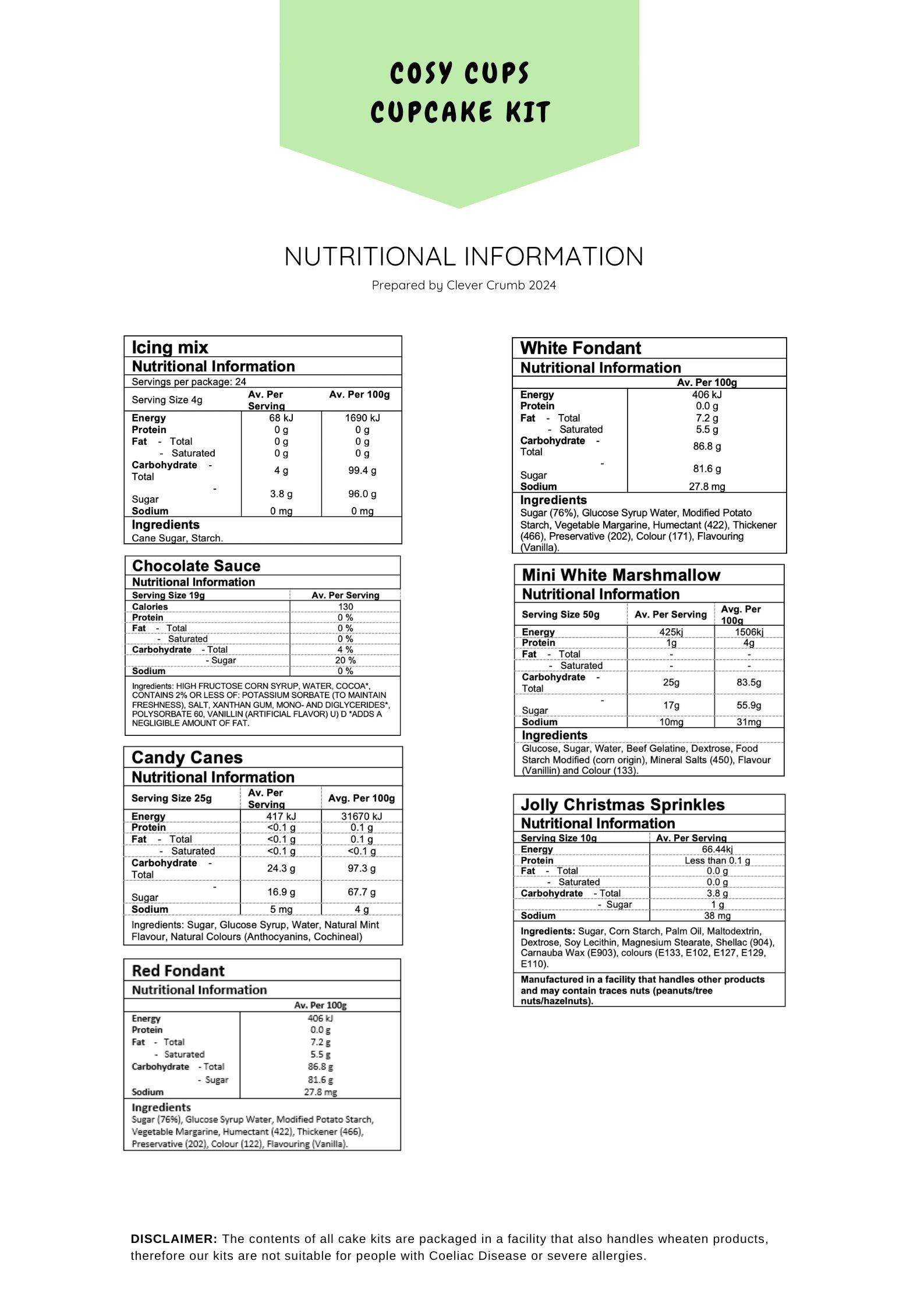 Refer to the nutritional information of this cake kit below. Ingredients are subject to change where required.