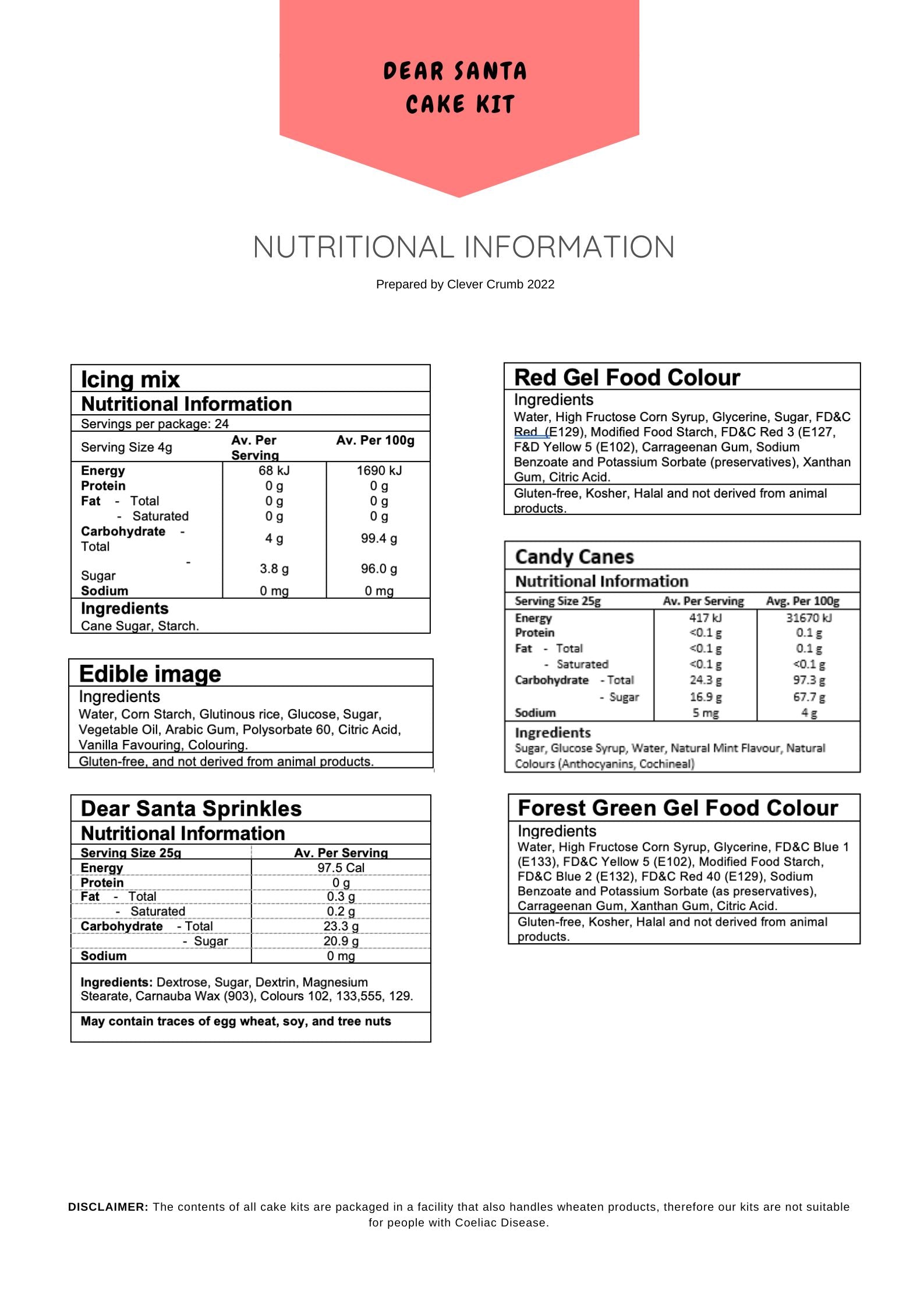 Refer to ingredients list for the nutritional information of this cake kit. Ingredients are subject to change where required.