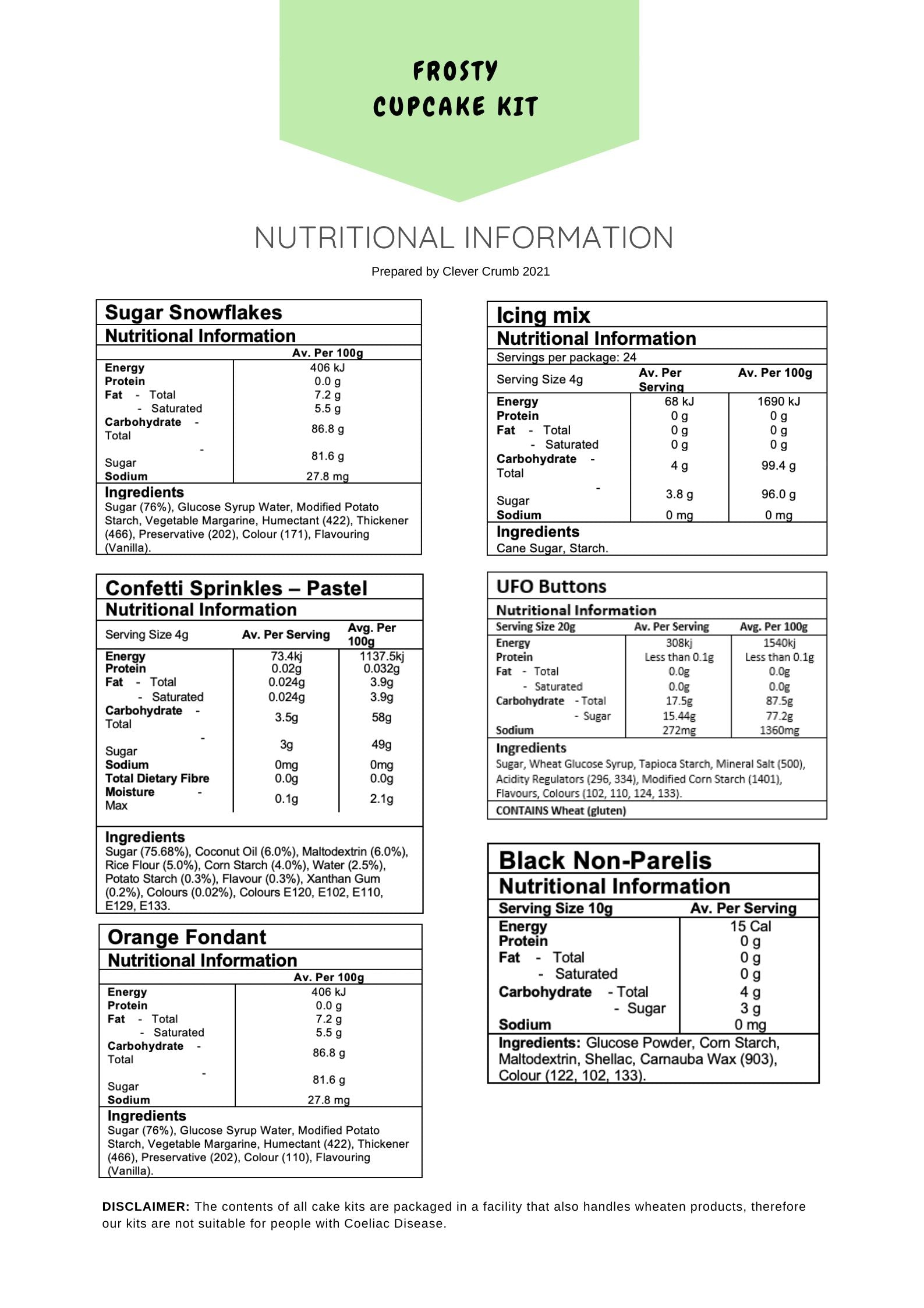 Refer to ingredients list for the nutritional information of this cake kit. Ingredients are subject to change where required.