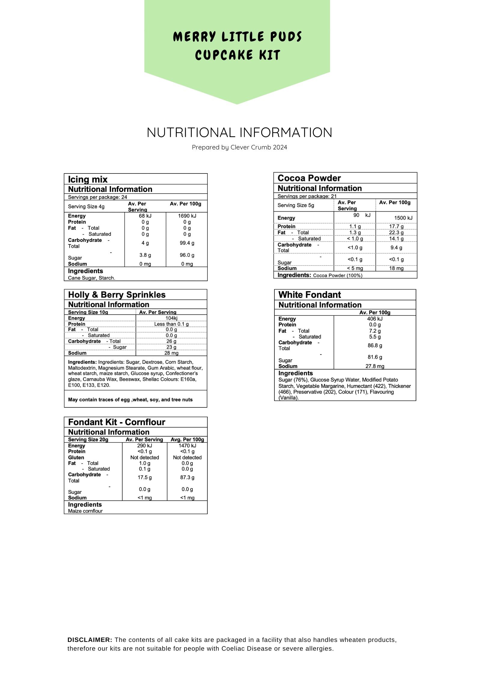 Refer to the nutritional information of this cake kit below. Ingredients are subject to change where required.