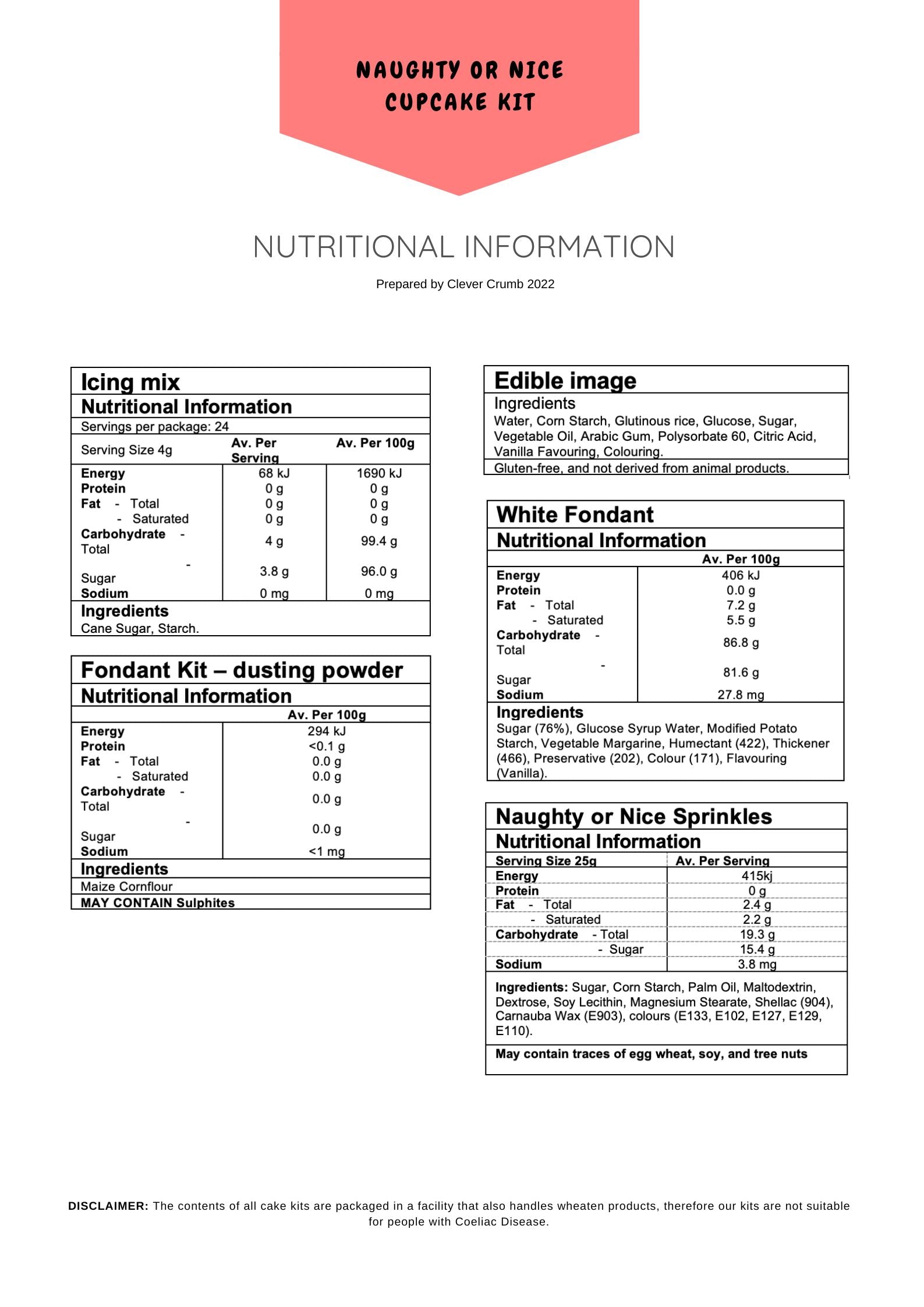 Refer to ingredients list for the nutritional information of this cake kit. Ingredients are subject to change where required.