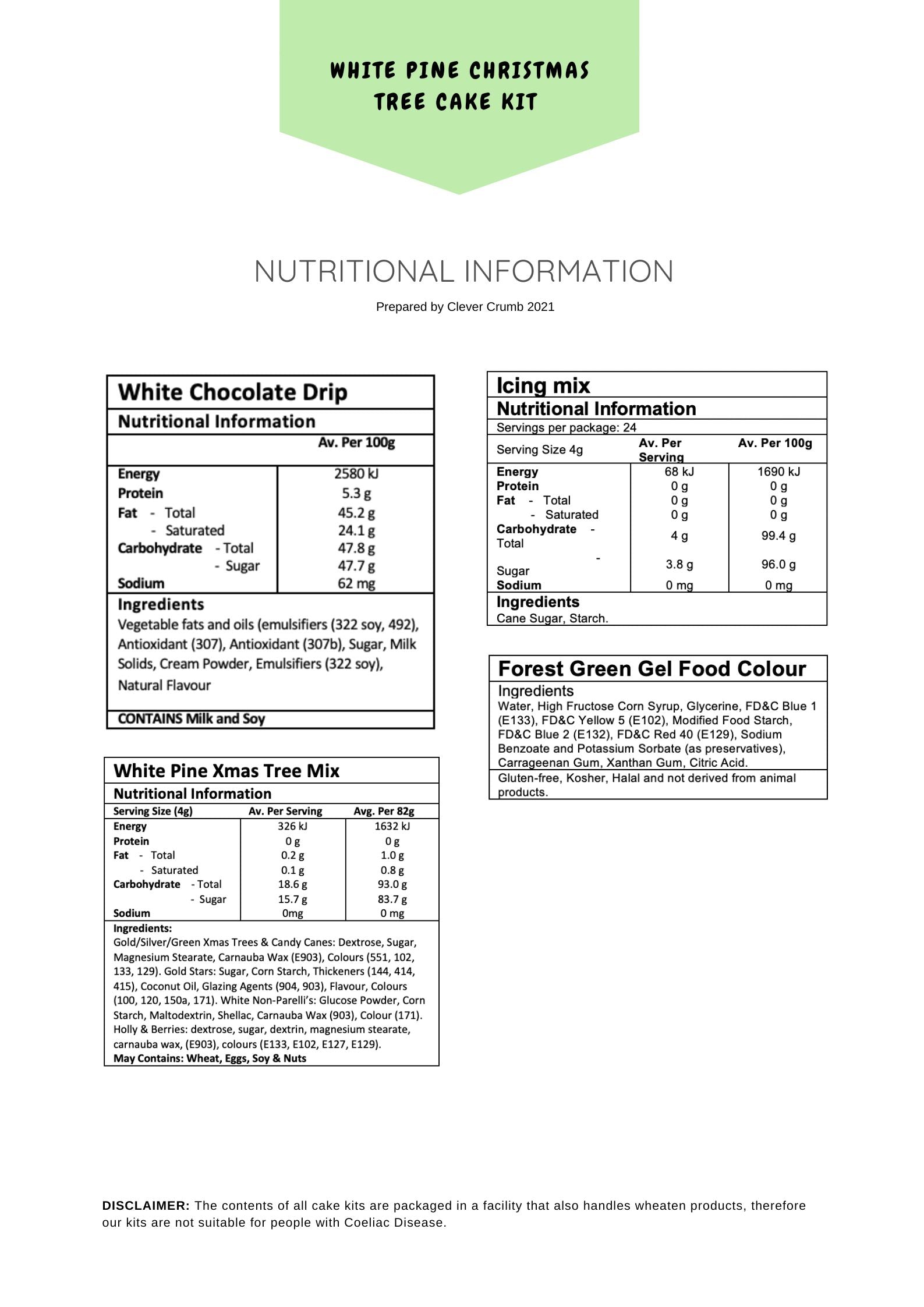 Refer to ingredients list for the nutritional information of this cake kit. Ingredients are subject to change where required.